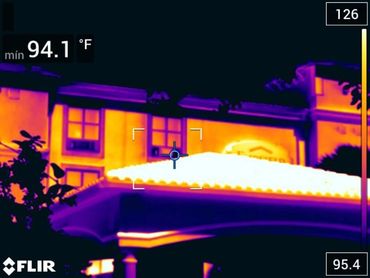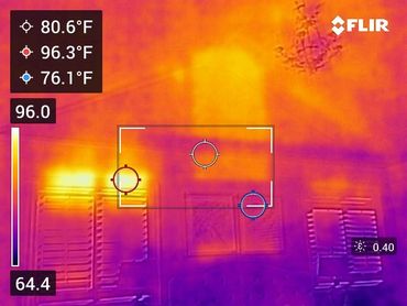 The extreme difference in temperatures is indicative of several elements, i.e., water, moisture, mold, humidity, and heat transfer into conditioned spaces. It also can detect interior air escaping from compromised fenestration, windows, sliding glass doors, standard doors, and walls. We find all of these thermal anomalies in all areas of the structure that are causing deterioration to different building components both interior or exterior.